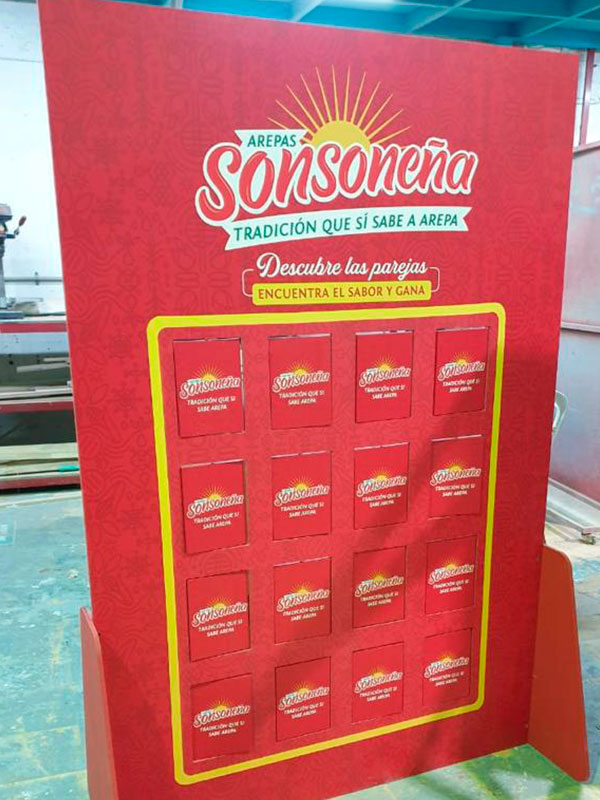 Juego de Memoria, fichas giratorias, el participante debe encontrar las parejas, Juego de habilidad y destreza. Incluye fichas magnéticas que se pueden redistribuir en el juego cada vez que empiece un nuevo participante. El cliente puede solicitar después la opción de kit de premios magnéticos para campañas y premios diferentes.